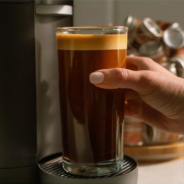 Your favorite drinks are just a touch away—grind, dose, brew and froth in style with the Rivelia fully automatic espresso