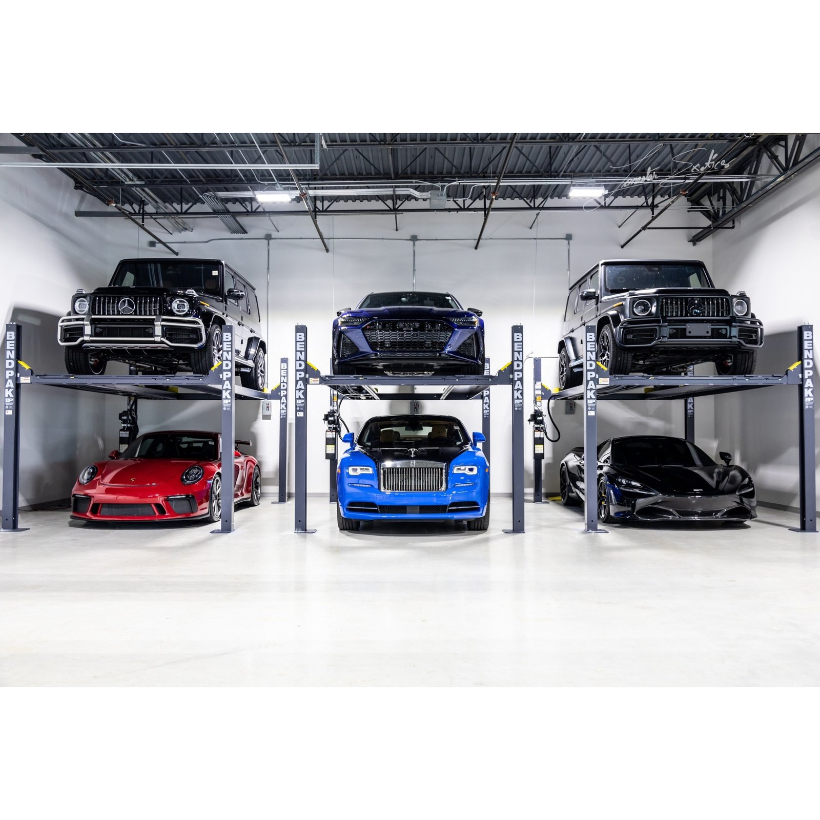 BendPak’s HD-7W is the standard-width car lift model in the HD-7 series. With a 110.25in. overall width and a spacious 100.25in. spread between the columns, there’s plenty of room to park most cars and trucks in the lower position. This leaves ample space for you to maneuver. Dependable, Light-Duty 7,000-lb. Capacity Four-Post Lift The 7,000-lb. capacity HD-7W is ideal for shops that want the versatility to park sports cars, sedans, light-duty trucks and SUVs in the same structure. There’s even enough side clearance to accommodate larger truck mirrors. Even so, this lift is only slightly larger than a typical parking space. Due to its reduced footprint, as well as its ability to house a variety of vehicle types in a low-ceiling garage, the HD-7W is an extremely attractive parking and maintenance solution for both homeowners and professional technicians. Dependable design The HD-7W features four stainless steel wire ropes, as well as a lone hydraulic cylinder that remains tucked underneath the runway. This powerful cylinder ensures you get a super-durable design that requires minimal maintenance over time. Dual-hub wire rope sheaves Larger wire rope sheaves prevent undue wear-and-tear on the four-post lift’s axles, wire rope and even the sheaves themselves. Dual-hub and oversized sheaves provide a safer product that lasts longer and costs less to maintain. The larger the sheave, the less friction against the components, so we make every single sheave larger than necessary. Typically speaking, the bigger the lift, the bigger the sheave!