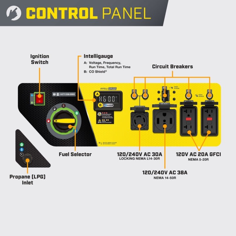 Easily monitor power output and track maintenance intervals with Intelligauge, which allows you to keep track of voltage, frequency, session run time, and total run time to easily monitor output and track maintenance intervals.
