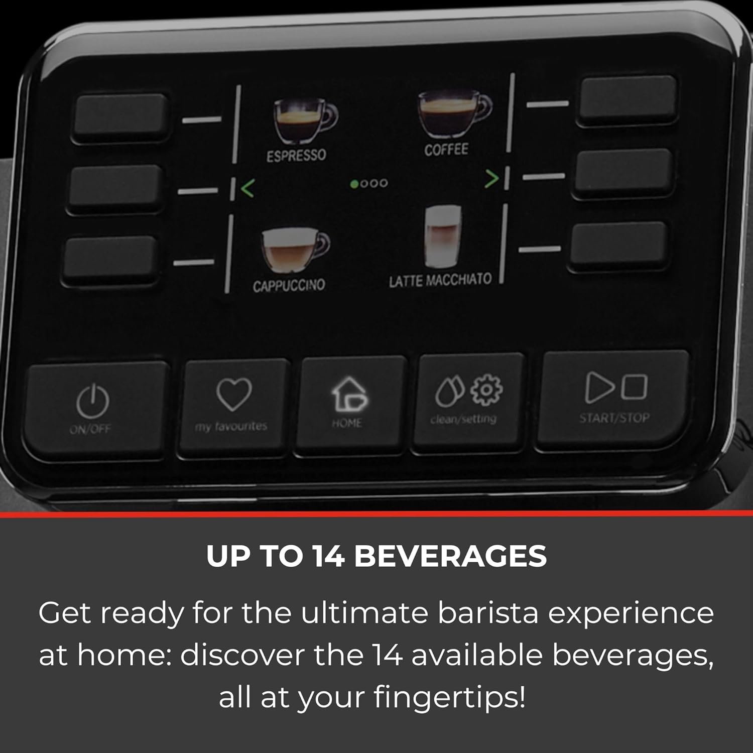 Intuitive User Interface|A full color TFT display allows you to scroll through 14 specialty beverages with backlit buttons and experiment with a number of customizable settings to build your favorite barista-style beverage.
