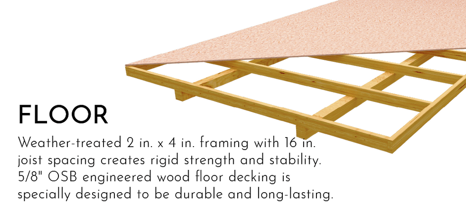 Pre-cut materials for easy assemConstructed with 2×4 studs and rafters, designed to withstand a wind rating of up to 90 mph