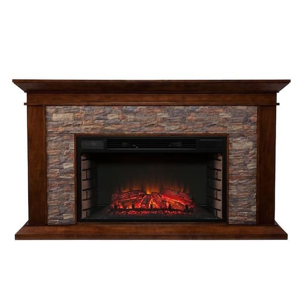 Western romanticism warms to life in this striking electric fireplace. Crisp white finish, subtle woodwork and rustic white simulated stacked stone encases the firebox. Extra wide fireplace ignites the senses; cozy heat fills great rooms and reading nooks alike, wowing any crowd. Conjure the ambience of a blazing hearth in an entertaining parlor, living room or dining area with this stunning, traditional fireplace. Energy efficient LED bulbs light the fire, a cost effective way to ignite bliss in any room without professional installation. User friendly remote control offers 4-way adjustability to customize the widescreen fireplace from the comfort of your sofa. Flames and logs harmonize with 5-level adjustment, plus optional down light illumination. An automatic shutoff and glass that remains cool to the touch ensure the fireplace warms safely. Turn off the heat to enjoy the fireplace ambience year round.