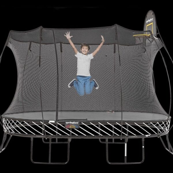 Get outdoors with your kids and have some soaring fun on this one-of-a-kind JumpFlex HERO 12-foot Trampoline. Thanks to the durable structure and ground-breaking spring mechanism, you can experience the excitement of soaring through the air with unmatched excitement. The high-tensile extension springs give bouncers smooth, deep bouncing and maximum airtime. Experience the unbeatable strength of the 360-degree durable polyester enclosure net, securely fastened to the jumping mat, enveloping the entire trampoline. Equipped with a revolutionary SafeSeal system, when the trampoline door is securely zipped shut, children can jump with boundless enthusiasm, free from falling out. For added convenience and safety, a ladder is included for easy exit and entry. This kids trampoline features a dual-ring metal frame offering strength and durability that lasts. The metal frame parts undergo a rigorous 6-layer rust-proofing and durability process, ensuring their resilience in any weather. Assembly has never been easier with its ingenious design, free from bolts and welds. The trampoline for adults and kids is ideal for people weighing between 40 to 200 pounds but can handle a maximum user weight of 550 pounds. Start jumping into great fun and exercise for the whole family with the HERO 12-Foot Trampoline from JumpFlex.