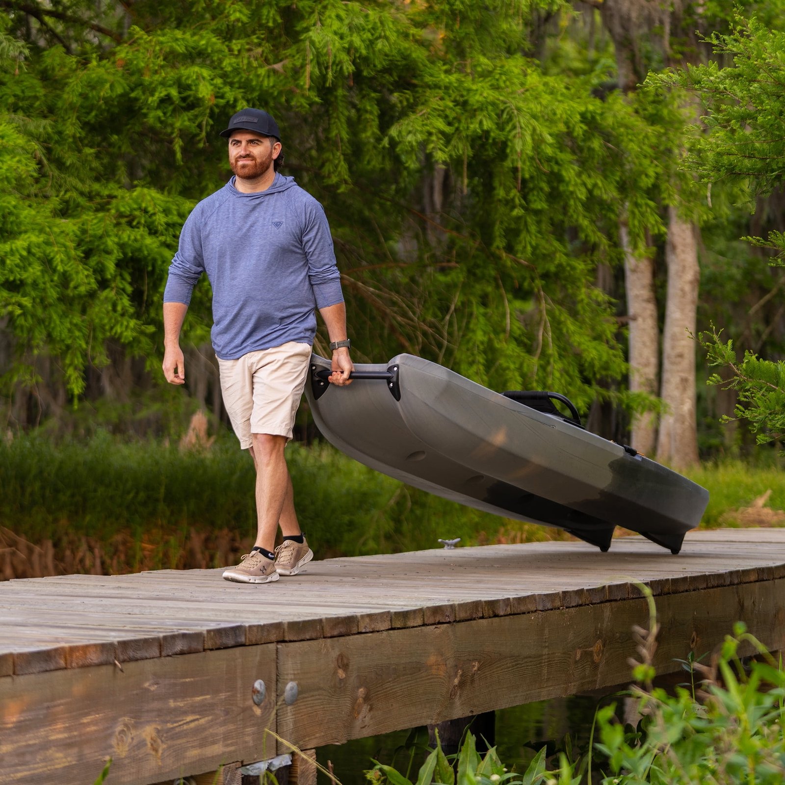Get ready to set out and pull in the catch of a lifetime with the Lifetime Manta Angler Kayak. Enjoy kayak fishing at its best with this top-of-the-line, feature-rich angler kayak designed to give you the tools you need for a great outing. With a uniquely wide, double-beam catamaran-style design, you can enjoy top-tier stability as you fish, and even stand up to cast and reel or sit down at your leisure, and use the EVA deck pad for comfort. Equip your accessories on four universal mounts and enjoy the spacious storage area with secure bungee on the stern, as well as a closeable bow storage hatch. Fish in comfort on the adjustable framed seat and adjustable footrests, so no matter how tall you are, your fishing craft is built to fit. Transport it to and from the water easily using the heavy-duty front and rear handles. With two forward flush-mounted rod holders and four rear rod holders, you can troll easily or free up your hands to manage equipment on the ample-sized deck, and keep all your rods ready for quick access. Want to set up a motor? The built-in mount and rudder will have you skimming over the water as you find the perfect spot. The Lifetime Manta Angler Kayak is made of high-density polyethylene that is lightweight and extremely durable, as well as UV and impact resistant. With scupper holes to drain water away from the deck and chine rails for speed and tracking, you can go anywhere you need to find that lurker. Enjoy the pinnacle of kayak fishing with the Lifetime Manta Angler Kayak.