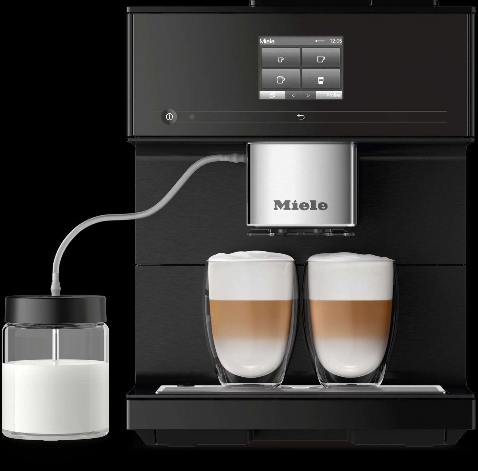 The integrated milk system textures milk automatically and dispenses it directly into your cup.