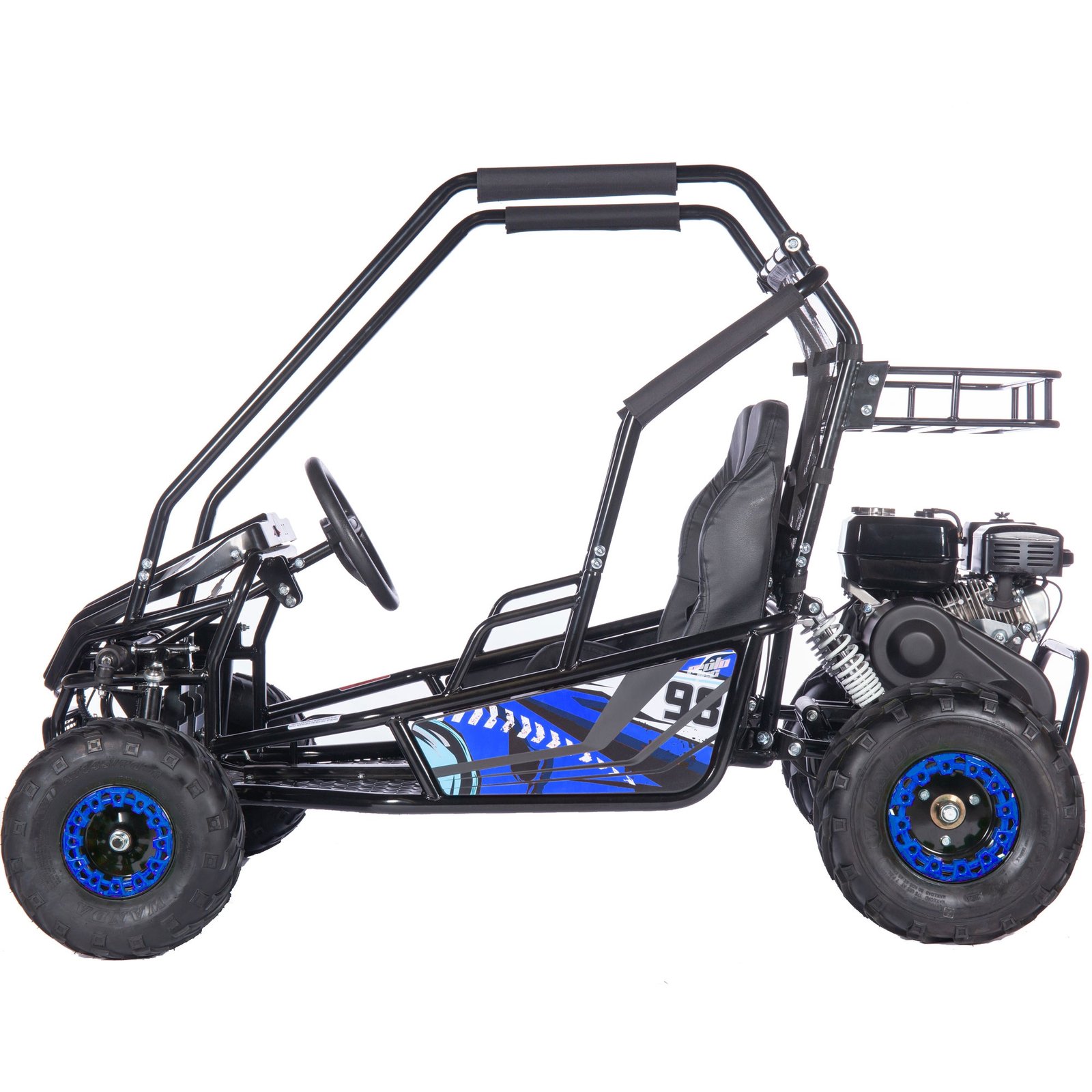 Introducing the new MotoTec Mud XL 212cc 4-Stroke 2-Seater Kids Off-Road Go-Kart with Front and Rear Suspension! It features a powerful 212cc 4-Stroke OHV engine, a padded roll bar, metal throttle and brake pedals, an adjustable seat, more headroom than the competition, and a four-point safety harness. Built to last, this go-kart features a pull-start system, a CVT torque converter, a rear rack, and low-pressure tires for optimal grip and ride comfort.