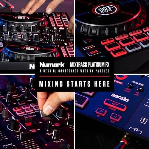HomeDJ Mixer Numark Mixtrack Platinum FX Serato DJ Controller with Jog Wheel Displays, 4 Decks, Mixer, Effects Paddles and (Audio Interface)