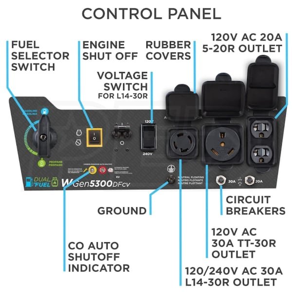 HomeGenerator Westinghouse WGen5300DFcv – 5300 Watt Dual-Fuel Portable Generator w/ RV Outlet & CO Sensor (49-State)
