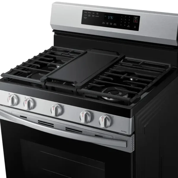 Get dinner on the table quickly with this electric double oven range. True convection cooking lets you cook food faster. Convection Conversion will do the math for you to adjust cooking times and temperatures. Skip preheating this kitchen range for frozen favorites like pizza, lasagna, chicken nuggets, fries or pies, thanks to Frozen Bake technology. The FlexHeat triple radiant element is like having 3 elements in one to fit small pots and pans and make room for larger cookware on the range stove. And if you make a mess, AquaLift self-cleaning technology provides this kitchen range with odor-free cleaning without harsh chemicals in only 50-minutes.